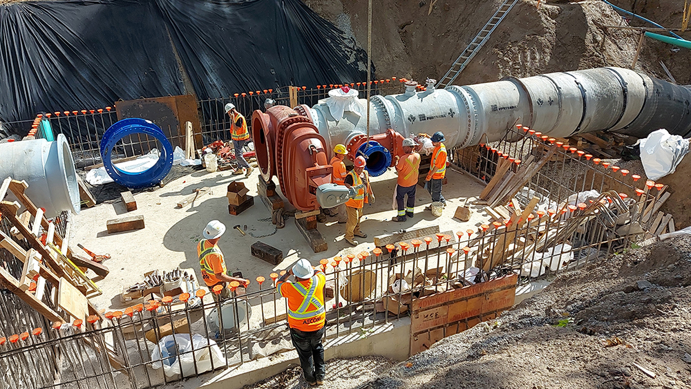 A major achievement was the successful and necessary relocation of the critical east/west 600mm watermain and the highly sensitive Chamber 13 from the constrained floodplain into the road right-of-way, a move that resolved significant conflicts with the proposed storm infrastructure. This required high precision to remove heavy concrete structures while keeping the water flowing for residents. The project management team proactively broke down the sheer magnitude and complex nature of the proposed upgrades into several manageable phases over multiple years, including the Regent/Maitland Valve Chamber in 2021, Regent/William Renewal in 2022, Regent/Fraser Renewal in 2023, and Chamber 13 Decommissioning in 2024. Dillon collaborated closely with the City to pre-purchase long lead items, such as a 1200mm valve, including main and by-pass actuators and surface mounted remote heads, that took 52 weeks to be delivered, ensuring the demanding multi-year schedule was maintained.